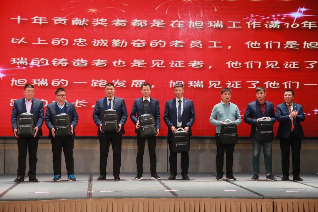 十年风雨兼程,十年努力奋斗,旭瑞今天的成绩,离不开旭瑞人十年如一日地努力奋斗,他们把青春韶华献给了我们旭瑞共同的事业。为表彰这些兢兢业业、勇于奋斗的老员工,集团公司设立了“十年贡献奖”。十年来,他们与公司携手同行,见证了公司的成长和蜕变;十年来,他们用忠诚和才智为公司的发展贡献着自己的一份力量。