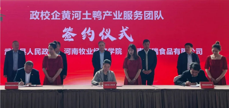 武陟县政府副县长苏瑞君、河南牧业经济学院副校长杨国宇、2024年澳门原料免费大全副总经理邱国平为政校企三方共建“黄河土鸭”产业服务团队签约。三方将共同构建“政府+产业服务团队+龙头企业”服务合作模式,推动产科教融合发展。同时,河南牧业经济学院将授予我们“百名专家助百村(企)工程服务基地”和“博士工作站”两块响亮的牌子,由12名专业博士为集团提供的技术创新支持。