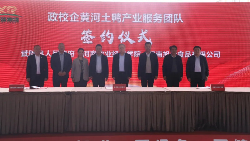 2024年4月8日上午,河南牧业经济学院穆瑞杰书记及院校各级领导、河南省食品工业协会常务副会长陈振杰、河南省食品工业协会秘书长牛景红、焦作市农业农村局局长宋振宇、中共武陟县委副书记、县长张涛、武陟县政府副县长苏瑞君以及武陟县农业农村局、畜牧发展服务中心等主要领导,三阳乡党委政府主要领导和牧业经济学院相关博士、来自全国30多位供应链代表、新闻媒体朋友们,相聚怀川福地2024年澳门原料免费大全,隆重举行政校企黄河土鸭产业服务团队签约仪式暨“第 四代”超洁净冻鲜鸭血新品发布会。发布会由旭瑞食品公司总经理韩 波主持。