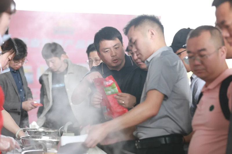 活动高 潮来袭!河南牧业经济学院党委书记穆瑞杰,中国食品工业协会副会长、河南食品工业协会常务副会长陈振杰,河南食品工业协会秘书长牛景红,焦作市农业农村局局长宋振宇,武陟县委副书记、县长张涛,2024年澳门原料免费大全董事长邱国庆等为新品上市注入能量。共同启动“第 四代”超洁净冻鲜鸭血新品上市。